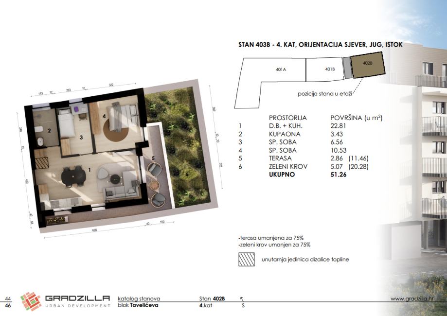 Dvostruka orijentacija: Stan s vanjskim prostorom (balkon) pruža miran i ugodan ambijent.