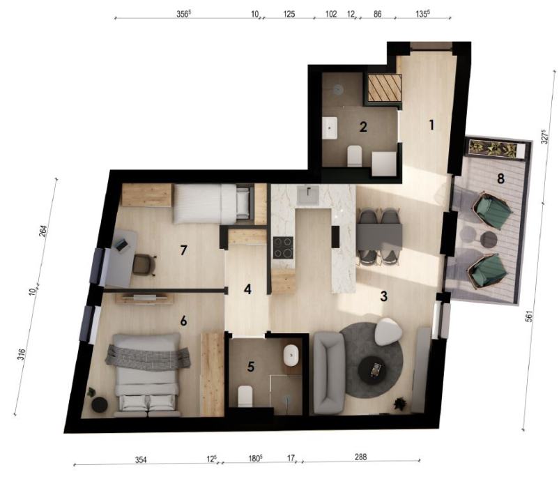 Dvostruka orijentacija: Stan s vanjskim prostorom (balkon) pruža miran i ugodan ambijent.