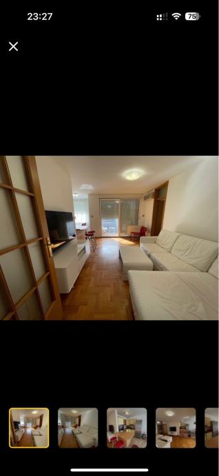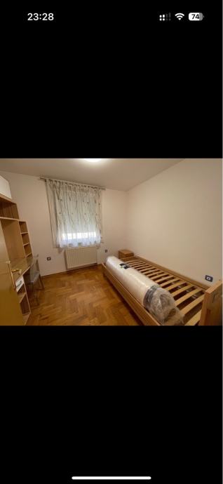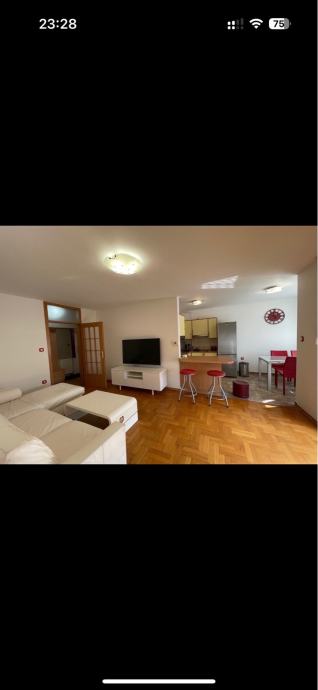 Iznajmljuje se potpuno namješten trosoban stan na Črnomercu, u mirnom dijelu naselja, u neposrednoj blizini tramvajskog okretišta i tramvajske zone. Stan se nalazi na 2. katu srednje zgrade s ukupno četiti kata. Ispred zgrada osigurana su vlastita parkirna mjesta, ograđena rampama.