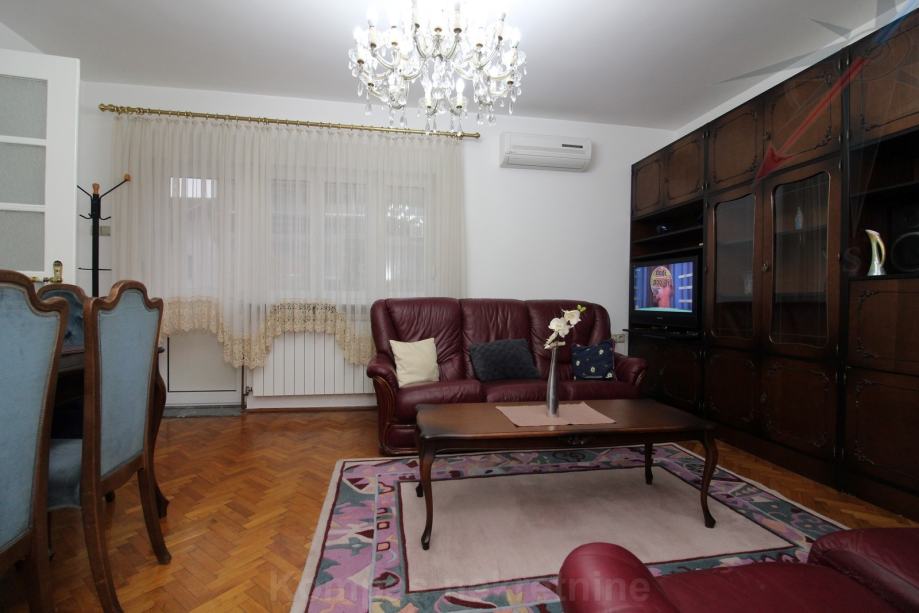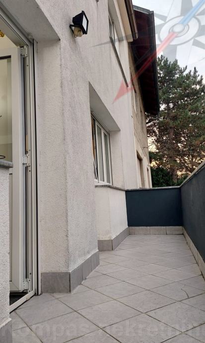 Furnished three-room apartment of 75 m2 on the first floor of a smaller building with three apartments, Ilica. It consists of a hallway, kitchen, living room, two bedrooms, bathroom, two balconies (10 and 5 m2). Has security door, optical Internet, air conditioning, gas heating, Miele household appliances. Keeping pets is not allowed. Utilities are paid as a flat rate of 150 euros per month. The tenant can use the common covered terrace in front of the building. Parking is possible on the street and is free of charge. The apartment is located near a school, a kindergarten, several shopping centers.