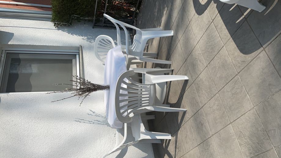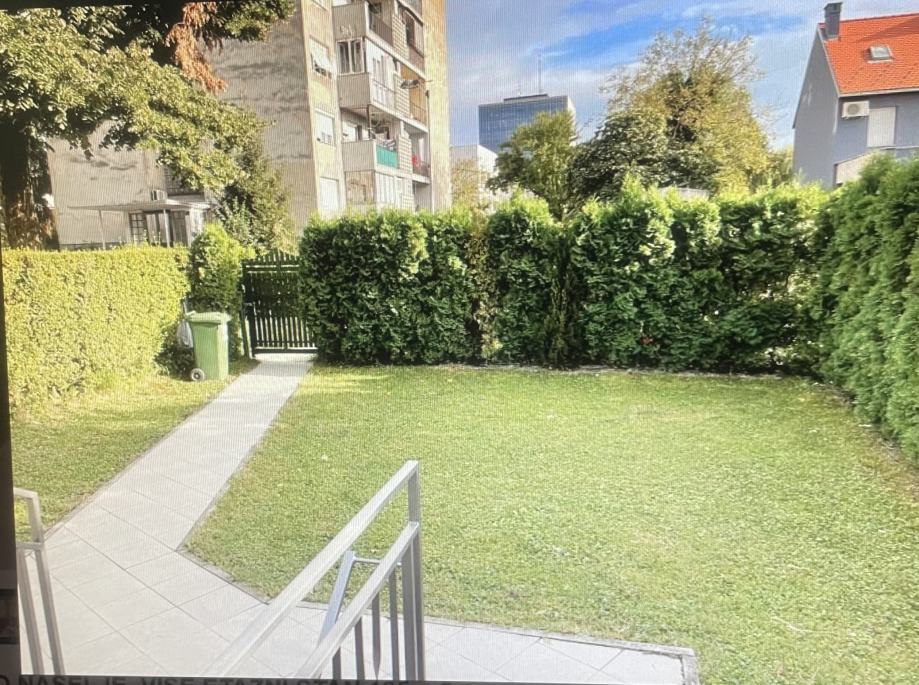 Iz terase se izlazi u vrt (oko 120 m2 gradskog zemljišta), koji se proteže na sve 3 strane kuće (sjever, zapad i jug), ima opločene staze na travnatoj površini i ograđen je lovor višnjom i tujama visine do 2,5m, što osigurava privatnost.