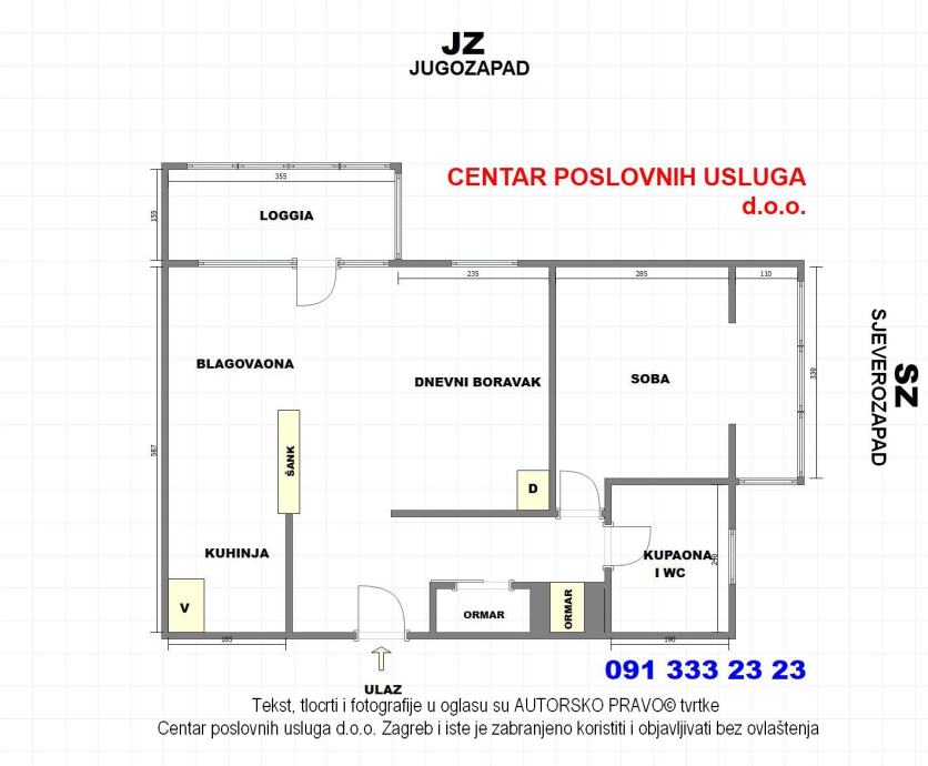 Tekst, tlocrti i fotografije u oglasu su AUTORSKO PRAVO© tvrtke Centar poslovnih usluga d.o.o. Zagreb i iste je zabranjeno koristiti i objavljivati bez ovlaštenja !