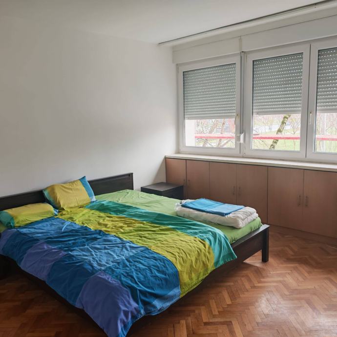 Iznajmljuje se stan u Cvjetnom naselju u Zagrebu, 56 m2. Stan se sastoji od jedne spavaće sobe, kuhinje, blagovaonice i dnevnog boravka kao open space, ostave, WC i kupaonice
