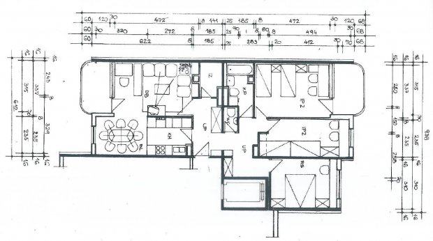 Sastoji se od 3 spavaće sobe,prostranog dnevnog boravka povezanog sa kuhinjom i blagavaonom, kupaone i posebnog wc-a.