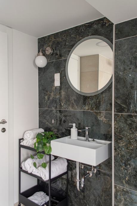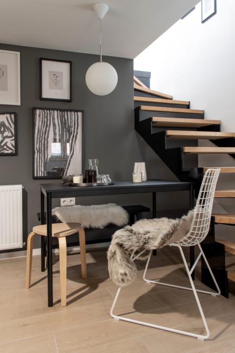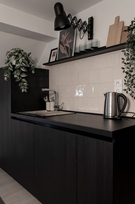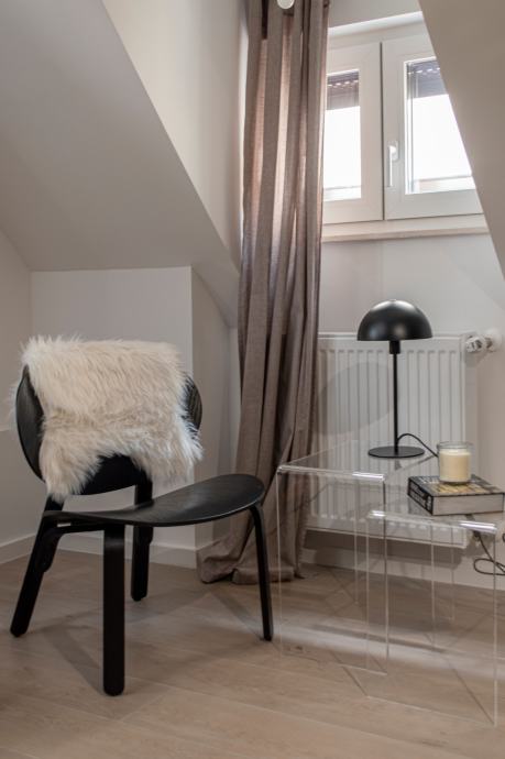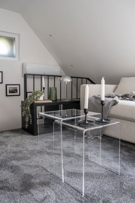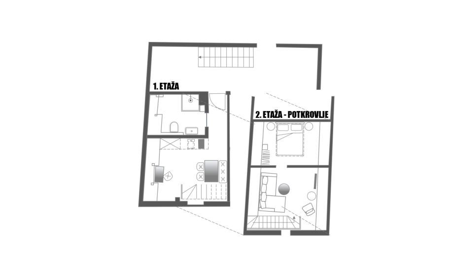 Studio je koncipiran na dvije etaže. Donja etaža sastoji se od čajne kuhinje s blagovaonicom i kupaonice, dok se na gornjoj etaži nalaze dnevni boravak s trosjedom i spavaća soba sa bračnim krevetom.