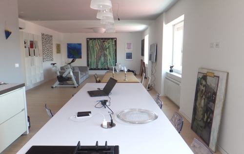 Stan se sastoji od ulaznog hodnika iz kojeg se ulazi u kuhinju, dnevni boravak i blagovanje koji su koncipirani po open space principu. Ova prostorija gleda na Dolac i zapadni dio Zagreba, uz kuhinju se nalazi gostinjski wc i smočnica; hodnik vodi u drugu kupaonicu i tri spavaće sobe od kojih je jedna master spavaća soba s ensuite kupaonicom i malim balkonom s pogledom na zagrebačku katedralu.