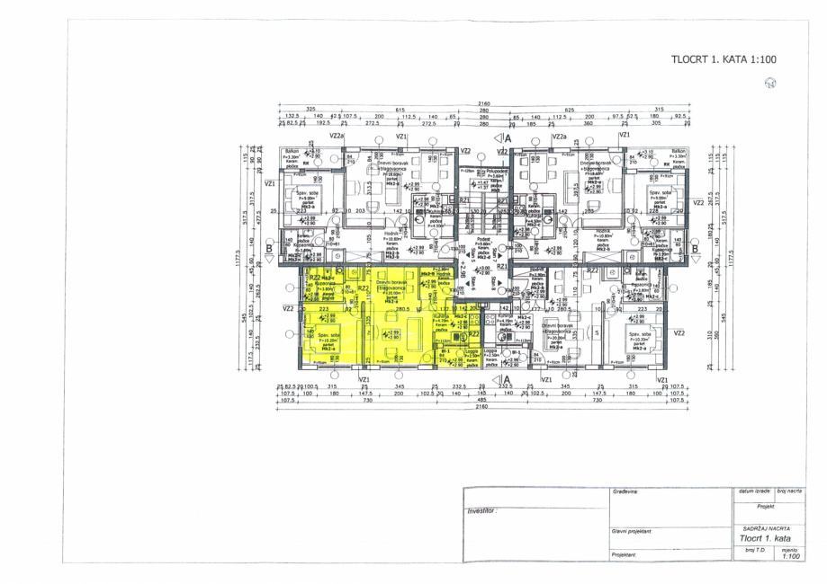 Dvosoban stan ukupno kvadrature s parkingom i spremištem 59 m2 nalazi se na prvom katu objekta (orjentacija jug), nema lift.