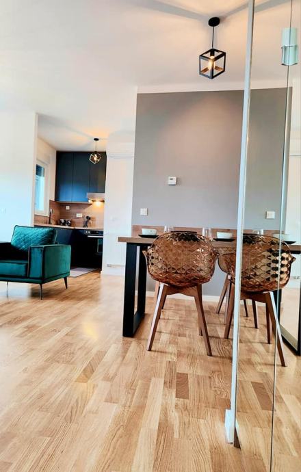Zagreb, Samoborska cesta 161/3, u novom (2023. g.) stambenom objektu iznajmljuje se kompletno opremljen i novo luksuzno namješten dvosoban stan s vlastitim vanjskim parkirnim mjestom i spremištem, ukupno stvarne površine 59 m2.