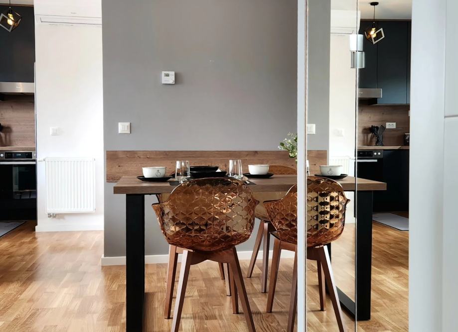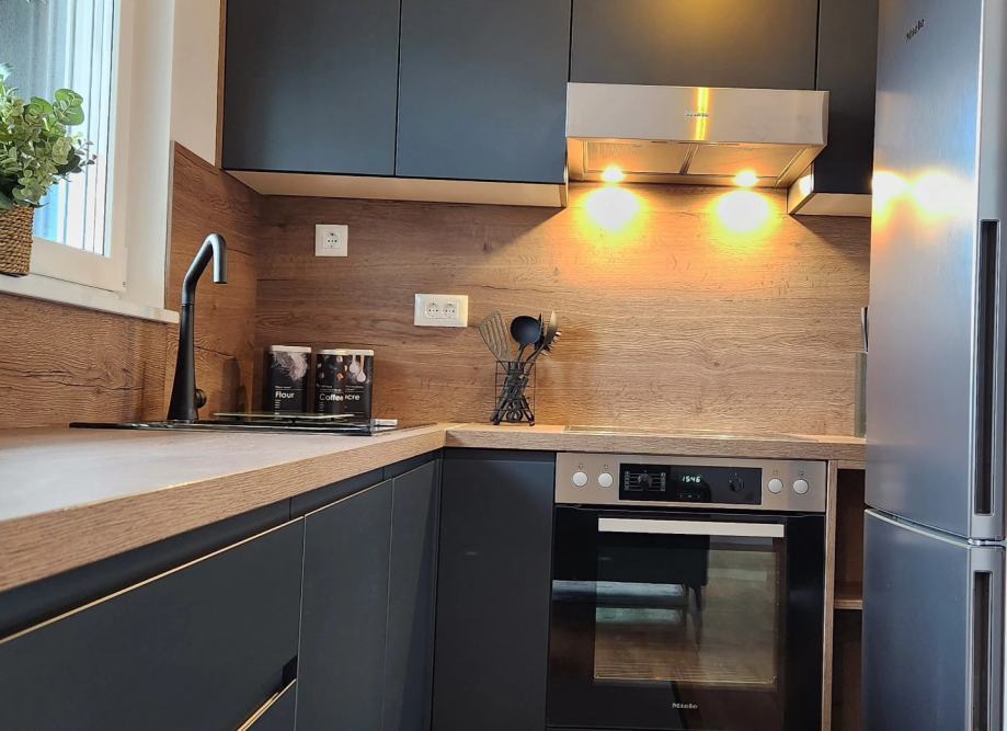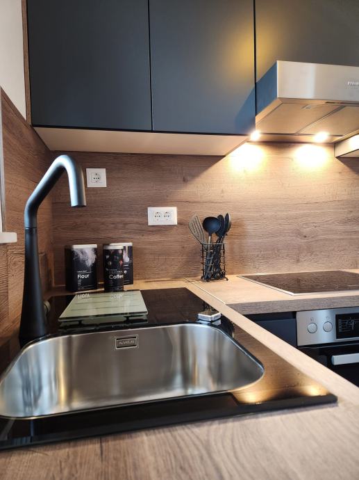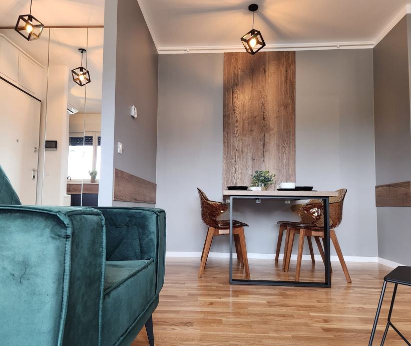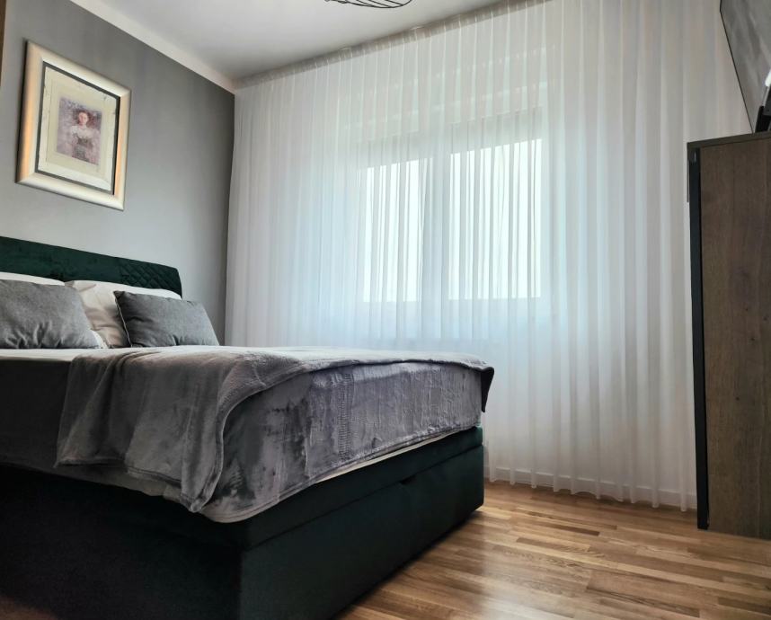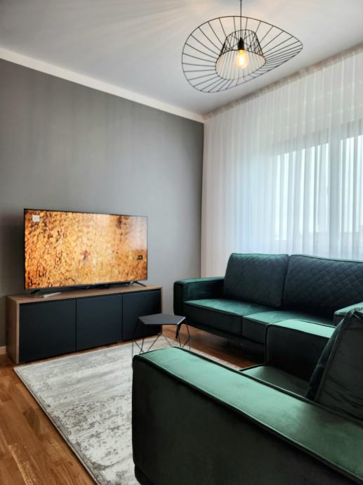Grijanje je centralno etažno na gradski plin, digitalni termostat, sva brojila su odvojena od ostalih stanova, Stan je kompletno novo namješten, te je opremljen visoko kvalitetnom novom opremom (perilica suđa, rublja, klima, napa, ploča za kuhanje, pećnica, dva TV-a). U stanu se nalazi novo posuđe i posteljina.