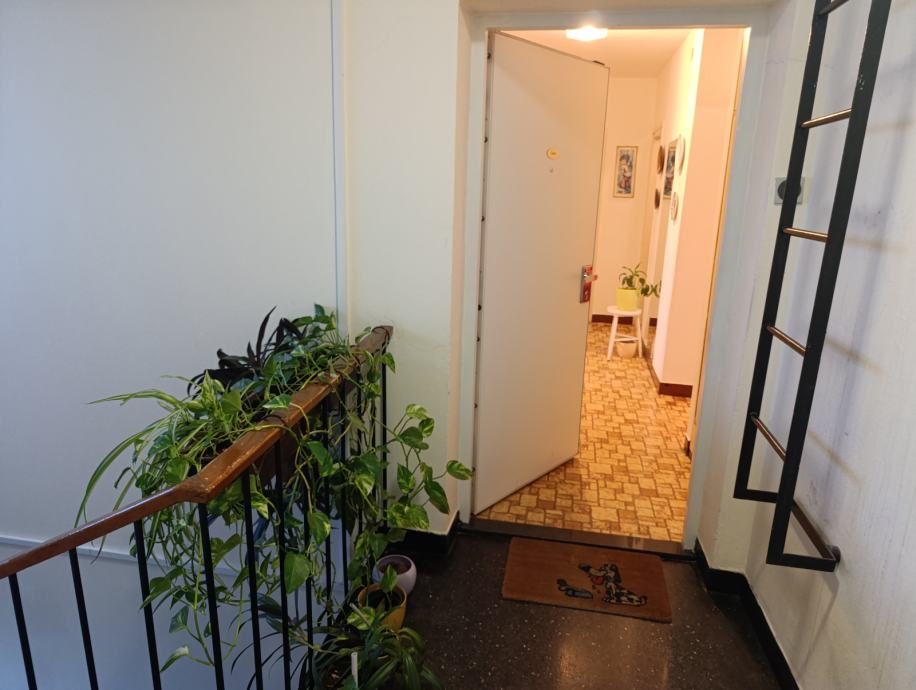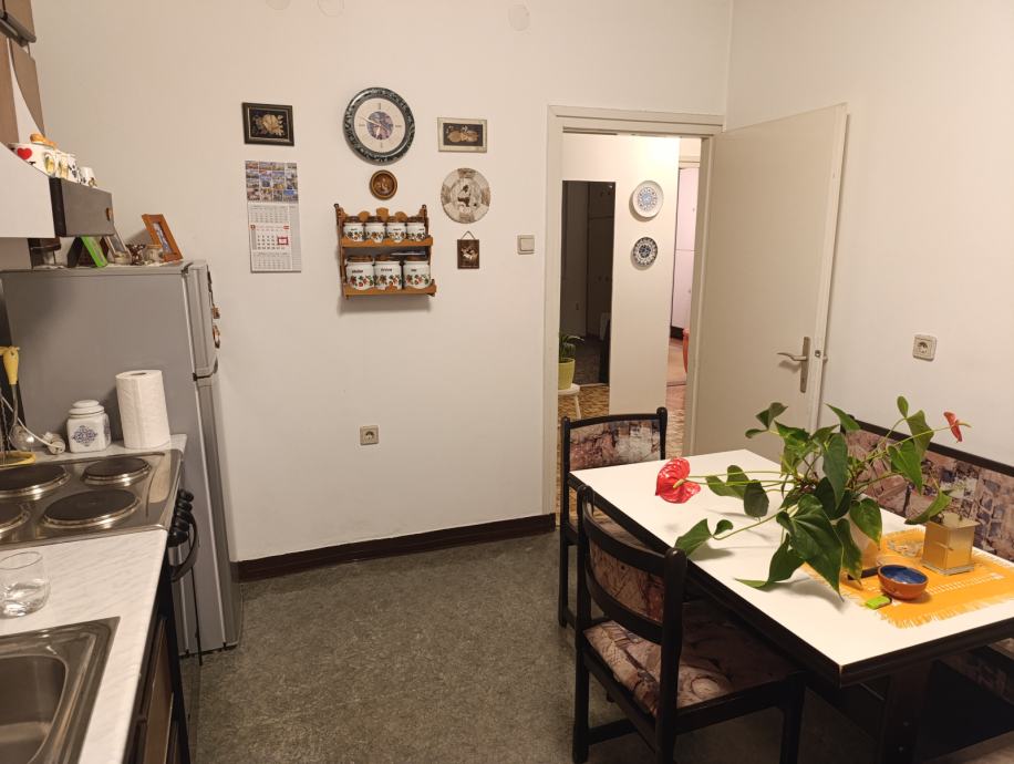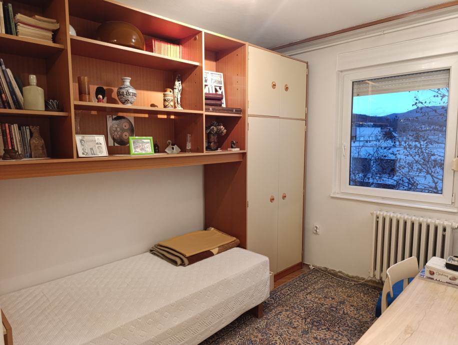 Stan na raskrižju Zagrebačke ceste i Tomislavove ulice, 4.-ti, ujedno posljednji kat zgrade bez lifta, krov nedavno potpuno obnovljen. Sastoji se od dnevne, spavaće i dječje sobe, kuhinje, kupaone i odvojenog toaleta te balkona. Pripada mu i ostava u podrumu.