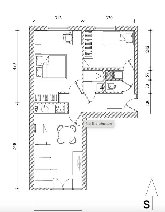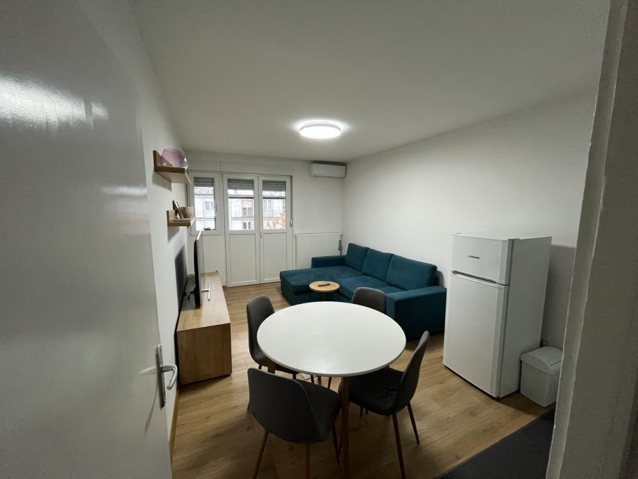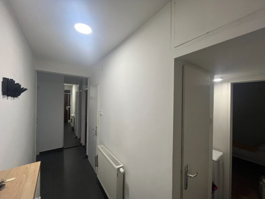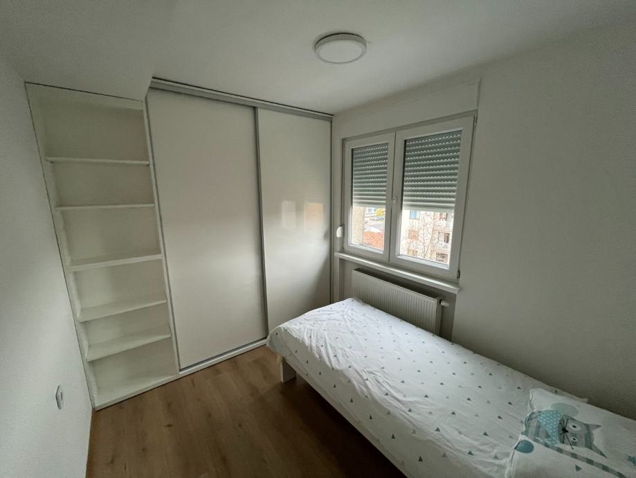 Iznajmljuje se kompletno renoviran i moderno opremljen stan od 52 m², smješten na 4. katu zgrade bez lifta. Stan se sastoji od hodnika, dnevnog boravka spojenog s kuhinjom i blagovaonicom, dviju odvojenih spavaćih soba, kupaonice, odvojenog WC-a te balkona.