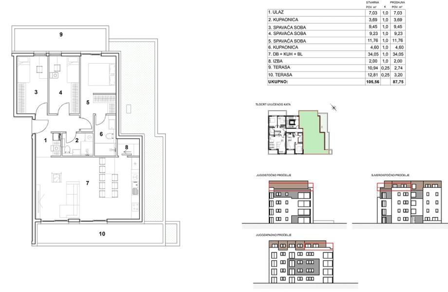 Stan S18 nalazi se na uvučenom katu stambene zgrade u Ilici 464.