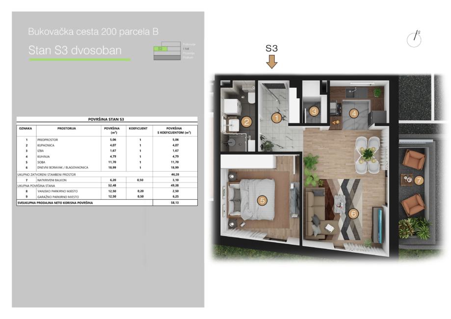 Površina stanova u projektu iznosi od 52 do 148 m2.