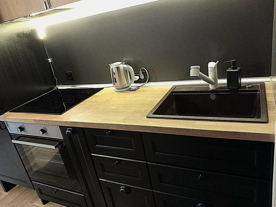 Apartman 1 sastoji se od: ulaznog hodnika, kuhinje s blagovaonicom i dnevnim boravkom, kupaonice, zasebnog toaleta, jedne manje sobe i balkona.