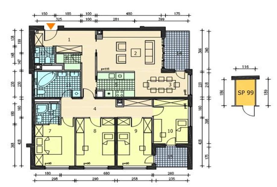 Dnevni dio stana orijentiran je na sjever-istok, što osigurava mnogo dnevne svjetlosti i topline, dok je spavaći dio orijentiran na jug.