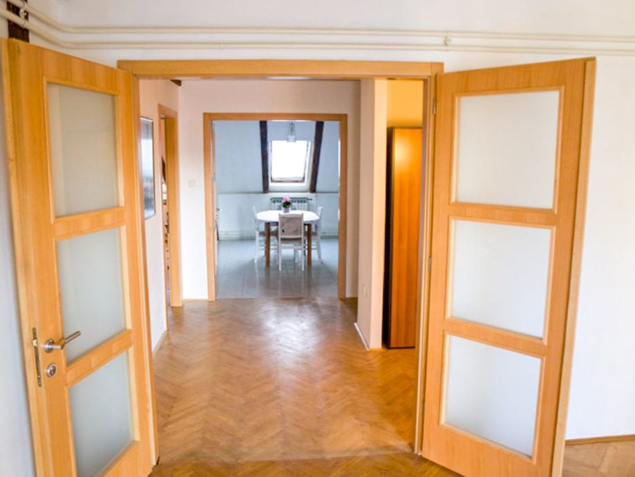 Prodaje se luksuzan stan s dvije etaže na 3. katu i etaži u potkrovlju. Ukupna korisna površina stana (bez koeficijenata) prema nacrtima i izmjeri je 190 m2, a s koeficijentima 145 m2.