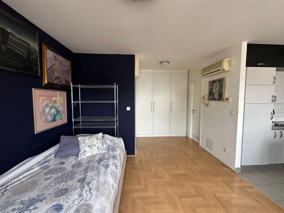 Iznajmljuje se garsonijera u novijoj zgradi, dugoročno. Podoban za dvije osobe. Orijentacija stana na sjever prema unutarnjem dvorištu, zaštićeno od prometne buke. Četvrti kat, lift. Pristup zgradi samo stanarima pomoću ključa ili šifre, dostupno spremište za bicikle. Tri minute od tramvajskih linija (6, 8, 2, 1, 17, 9, 13, 5, 7).