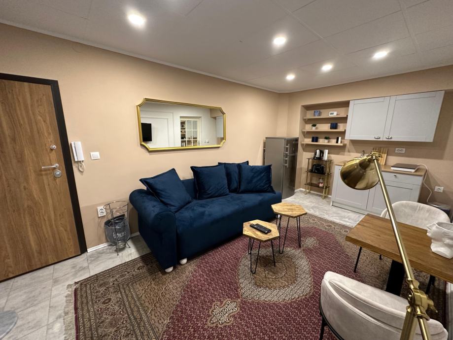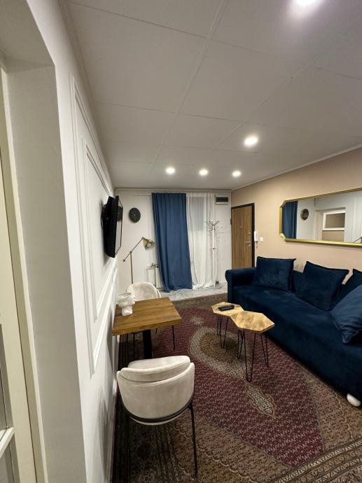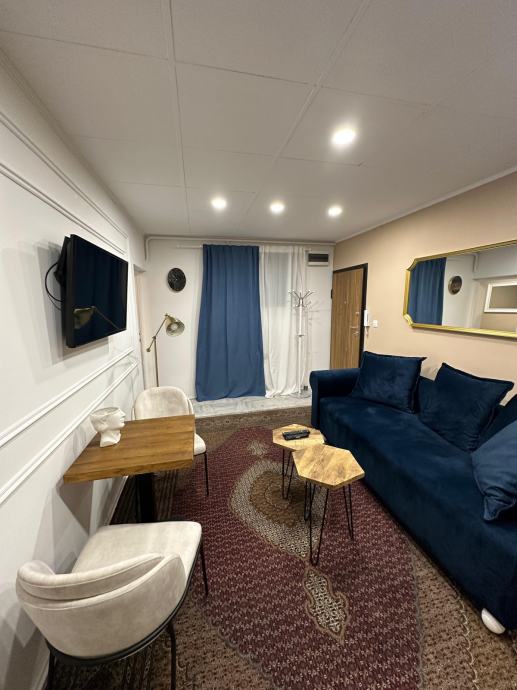 Stan je površine 32 m2, kompletno renoviran i opremljen novim namještajem.