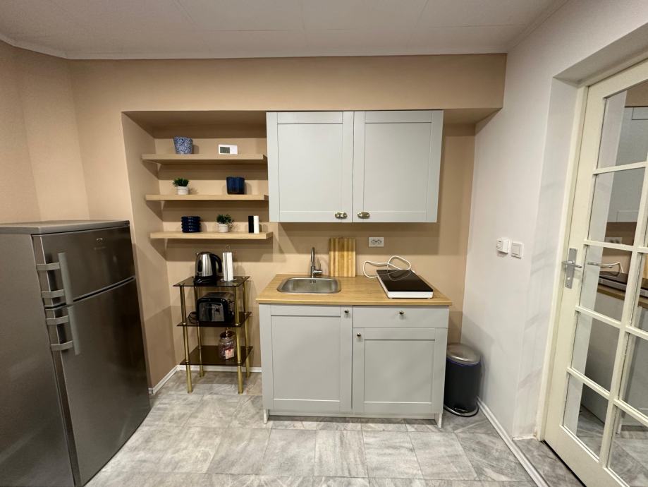 Stan je smješten u suterenu, orijentiran prema dvorišnoj strani (prozori gledaju na dvorište, a ne na ulicu što osigurava privatnost i tišinu).