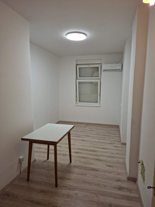Također postoji zajedničko dvorište zgrade koje se može koristit, a stan ima pripadajući dio spremište u podrumu od 7m2. Grijanje je trenutno na klimu, ali stan ima priključak na plin.