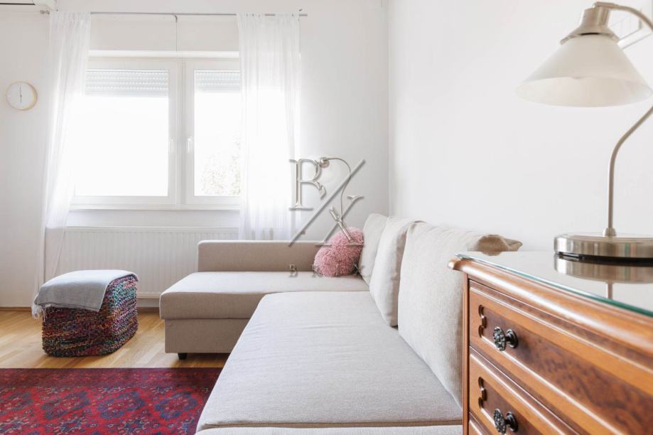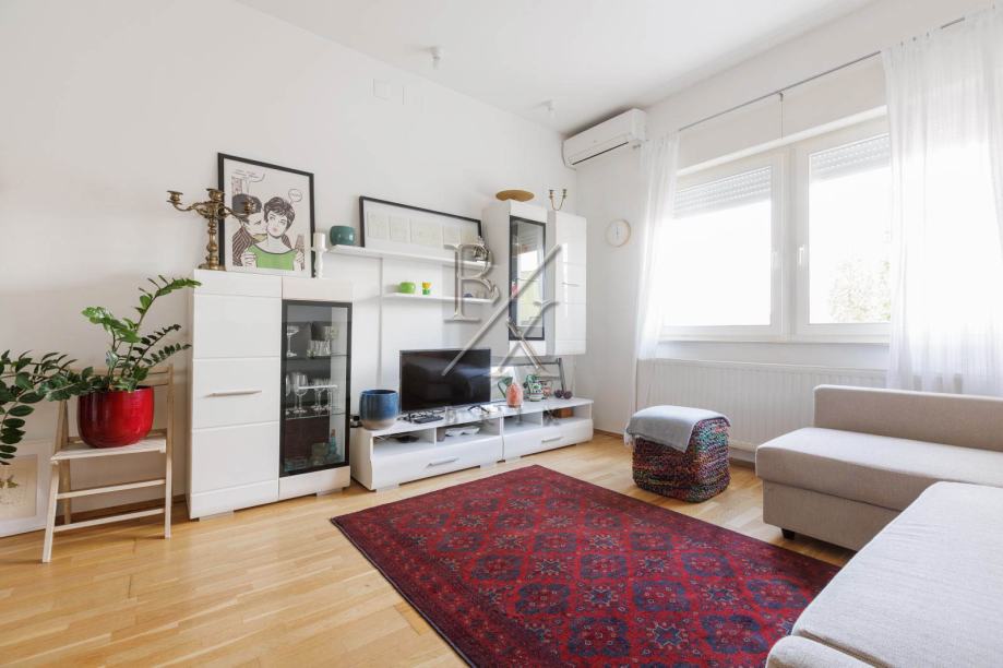 Stan se nalazi na trećem katu zgrade bez lifta, a odlikuje ga vrlo funkcionalan i skladan raspored prostorija. Sastoji se od ugodnog dnevnog boravka povezanog s blagovaonicom, zasebne kuhinje, hodnika, spavaće sobe te kupaonice s WC-om. Prostor je ispunjen prirodnim svjetlom.