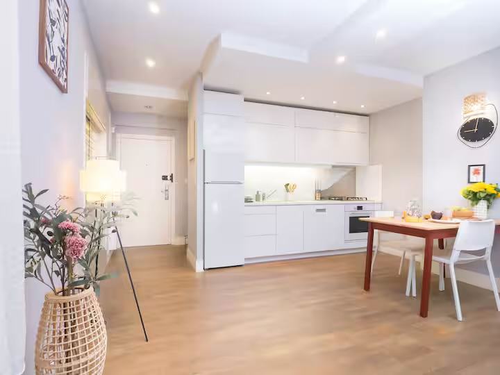 Iako se stan nalazi u živopisnom i frekventnom dijelu grada ima pogled na mirnu, dvorišnu stranu a tlocrtno se sastoji od: manjeg ulaznog dijela, dnevnog boravka s blagovaonicom i potpuno funkcionalnom kuhinjom, spavaćom sobom i kupaonicom (s komfornom tuš kabinom i podnim grijanjem).