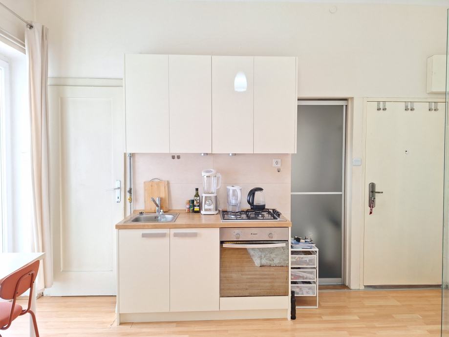 Stan ima visoke stropove i puno dnevnog svjetla. Sastoji se od dnevne sobe sa kuhinjom, odvojene manje spavaće sobe, kupaonice, ostave i lođe.