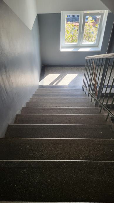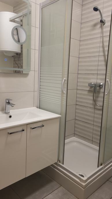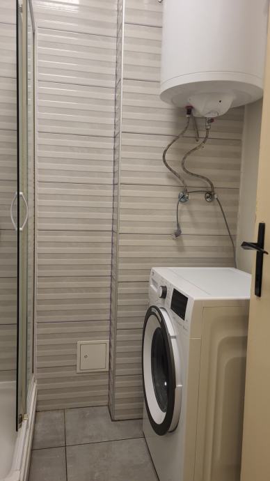 Stan se nalazi na 4. katu u zgradi bez lifta. Sastoji se od ulaznog hodnika, wc-a s mini umivaonikom, kuhinje, prostranog dnevnog boravka, spavaće sobe te kupaonice s tuš kabinom, velikim umivaonikom i perilicom rublja.
