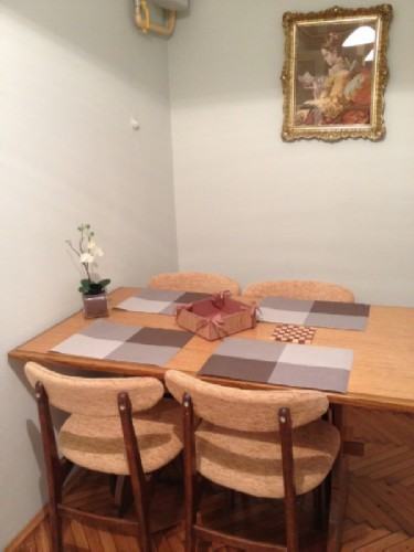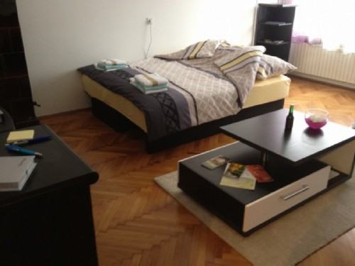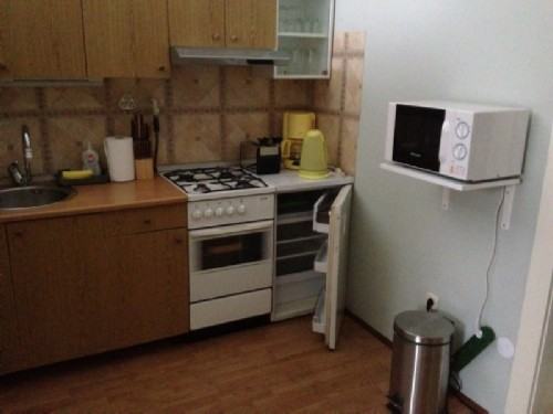 The apartment was completely renovated a few months ago. It consists of a dining room which is connected with kitchen, bedroom and bathroom. The apartment has a three star and the city office solution for service apartments in the household.