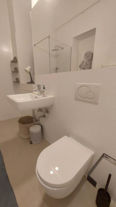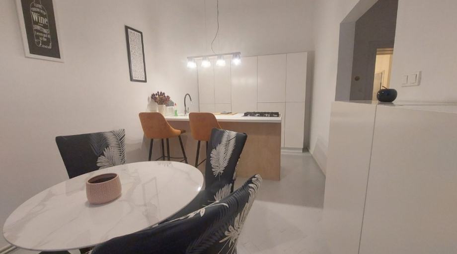 Unutrašnjost stana u potpunosti je adaptirana, uz zadržan prepoznatljiv štih starozagrebačkih stanova. Instalacije struje i vode obnovljene su 2019., unutarnje uređenje i podovi izvedeni 2022., dok je kupaonica potpuno renovirana 2025. godine. Visoki stropovi od 3,20 m stvaraju osjećaj prostranosti i elegancije, a originalni detalji poput visokih vrata i rasporeda prostorija podsjećaju na staru zagrebačku arhitekturu.