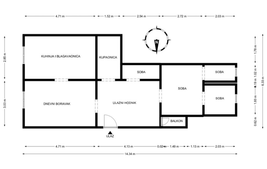 Stan ima istok–zapad orijentaciju: kuhinja, blagovaonica i dnevni boravak okrenuti su prema Palmotićevoj ulici, dok su spavaća soba, balkon i dodatne prostorije usmjerene prema mirnom dvorištu.