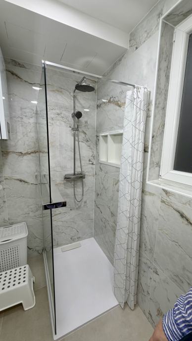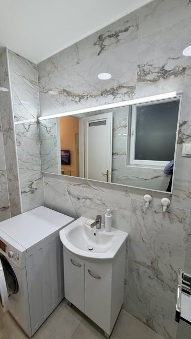 Stan je u potpunosti renoviran i opremljen novim instalacijama i uređajima, uključujući nove PVC prozore, energetski učinkovit kondenzacijski bojler i klima uređaj. Opremljen je svim potrebnim aparatima za ugodan život, uključujući perilicu i sušilicu rublja te perilicu posuđa.