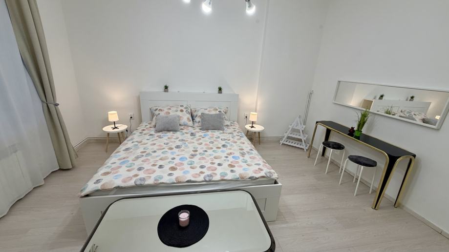 Interijer je uređen moderno i skladno, s naglaskom na udobnost i funkcionalnost, čime se stvara ugodan ambijent za svakodnevni život. Stan je spreman za useljenje te se iznajmljuje isključivo na duži vremenski period.
