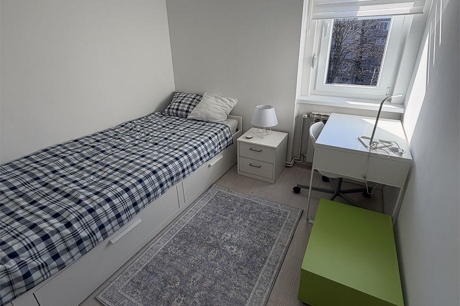Iznajmljuje se moderno i potpuno novouređen stan na izuzetnoj lokaciji u Zagrebu, u neposrednoj blizini Kvaternikovog trga u Heinzelovoj ulici. Stan se nalazi na drugom katu uredne i održavane zgrade te zahvaljujući dobrom rasporedu i velikim prozorima obiluje prirodnim svjetlom.