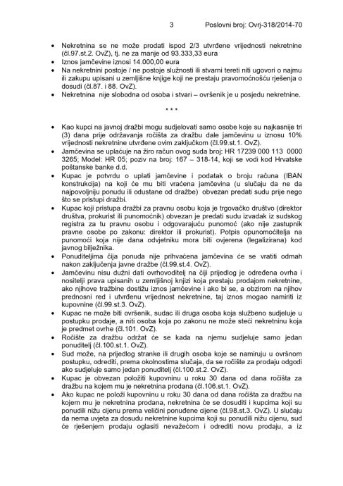 Nekretnina iz toč.1. Zaključka bit će prodana na prvoj usmenoj javnoj dražbi –