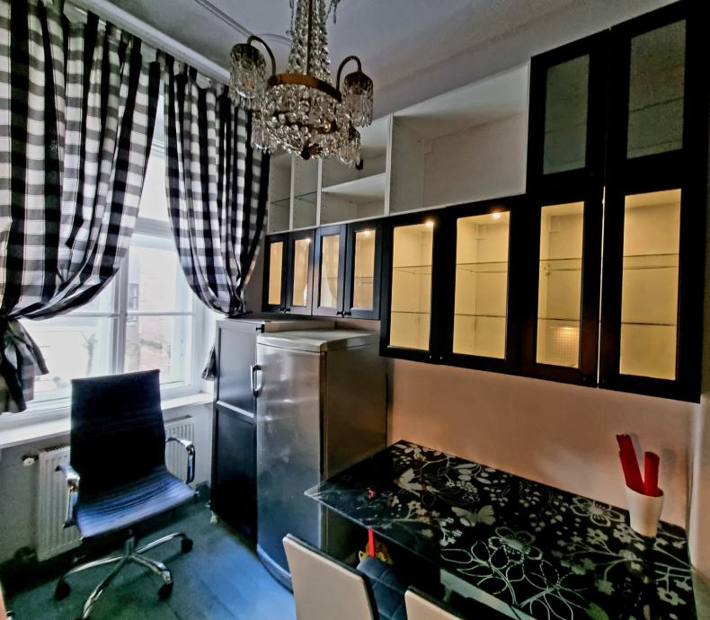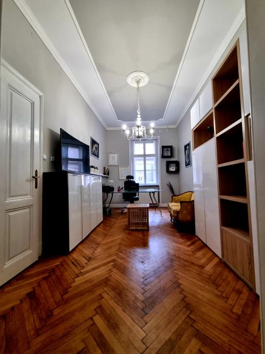 Iznajmljuje se ili daje u zakup prelijepi dizajnerski stan u strogom centru Zagreba, u Palmotićevoj ulici. Stan se nalazi u visokom prizemlju te je isti idealan za obavljanje bilo kakve poslovne uslužne djelatnosti (odvjetničkog ureda, knjigovodstvenog servisa, ordinacije i sl.) ili stanovanja. Stan je u potpunosti skriven od pogleda s Palmotićeve ulice radi visine visokog prizemlja. Stan se sastoji od ulaznog hodnika koji se rasprostire u obliku slova L, wc-a, kupaonice, kuhinje i tri zasebne sobe od koje dvije imaju pogled na Palmotićevu ulicu, a jedna na dvorište zgrade, te je jedna najprostranija soba izuzetno reprezentativnog salonskog izgleda. Stan je površine 84 m2 i uređen je u prelijepom modernom stilu sa antiknim detaljima te predivnim štukaturama i rasvjetom. Ulazna vrata stana su protuprovalna sa svim mogućim zaštitama. Položaj stana je istok-zapad i jednim dijelom gleda prema dvorišnoj zgradi, a drugim dijelom izravno na Palmotićevu ulicu. Uz stan se iznajmljuje/daje u zakup i potpuno opremljena kuhinja po mjeri a po dogovoru i rasvjetna tijela ili drugi pripadajući namještaj. Stan je opremljen i svim kućanskim aparatima, uključujući perilicu rublja, zasebno sušilicu rublja, dok je kuhinja opremljena u potpunosti. U blizini stana se nalazi javna garaža(Petrinjska ulica) i javni vanjski parking,. Zgrada ima zelenu oznaku nakon potresa što znači da nije doživjela nikakva zamjetna oštećenja. Najam/ Zakup se daje na minimalno razdoblje od jedne godine uz obavezno plaćanje pologa (jedna mjesečna rata), solemnizaciju ugovora, te davanje bjanko zadužnice u maksimalnom iznosu od šest mjesečnih zakupnina/ najma na kojima je ovjeren potpis pravne osobe i odgovorne osobe u svojstvu jamca platca.
