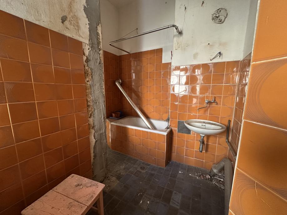 Stan je za adaptaciju, na prvom katu, uredne i kvalitetne dvorišne zgrade, mirno i bez buke, te primjereno udaljenje od ulične sa zelenilom između tih dviju zgrada s mogućnošću korištenjem i uređenjem vrta -dvorišta. Novija, uređena fasada, krovište i limarija. Stan ima lođu i šupu. Stan ima sve instalacije, te su u zgradi sve nove vertikale instalacija, u stanu ih treba instalirati.