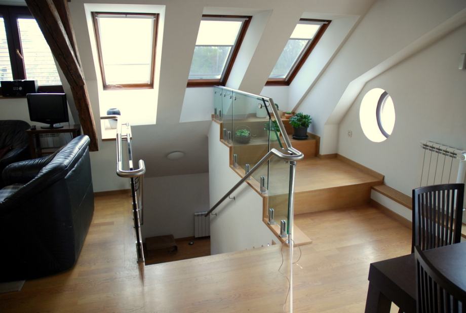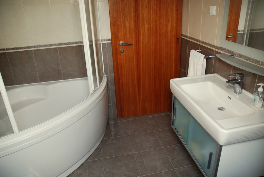 Sastoji se od prostranog dnevnog boravka s kuhinjom i blagavaonicom, tri spavaće sobe, kupaonice i gostinjskog WC-a. Stan je potpuno opremljen s klimom, plinskim etažnim grijanjem, videoportafonom, internetom i satelitskom antenom. Kompletno je preuređen 2010. godine.
