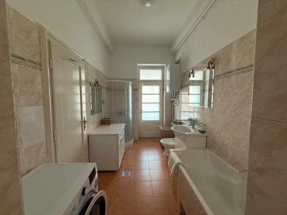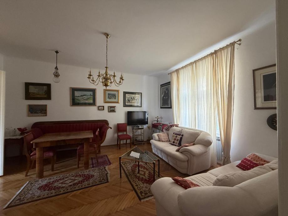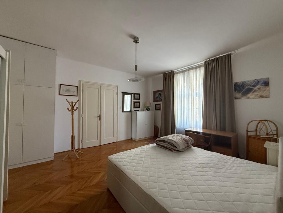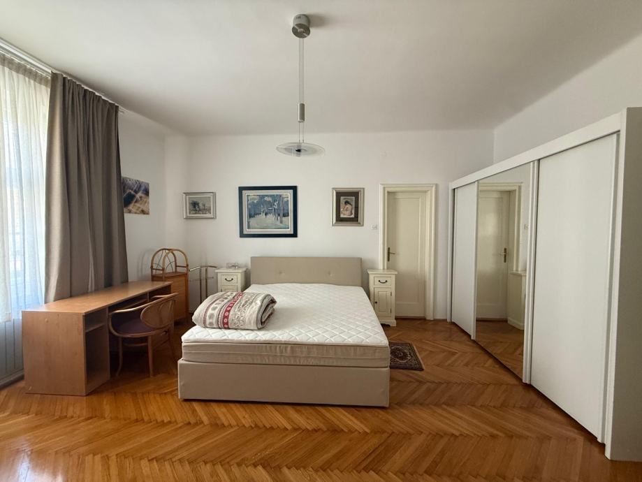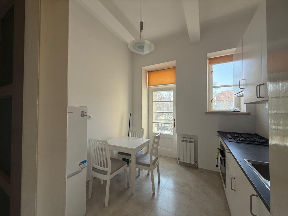 Iznajmljuje se potpuno uređen stan od 97 m² u samom središtu grada, blizu Britanskog trga. Stan se nalazi u mirnoj, dvorišnoj zgradi i pruža privatnost i udobnost uz centralnu lokaciju. Sastoji se od dvije velike spavaće sobe, prostranog dnevnog boravka, kuhinje, kupaonice s kadom i tuš kabinom, odvojeni wc. Stan također ima balkon i loggiu. Stan se nalazi na 1. katu zgrade s liftom.