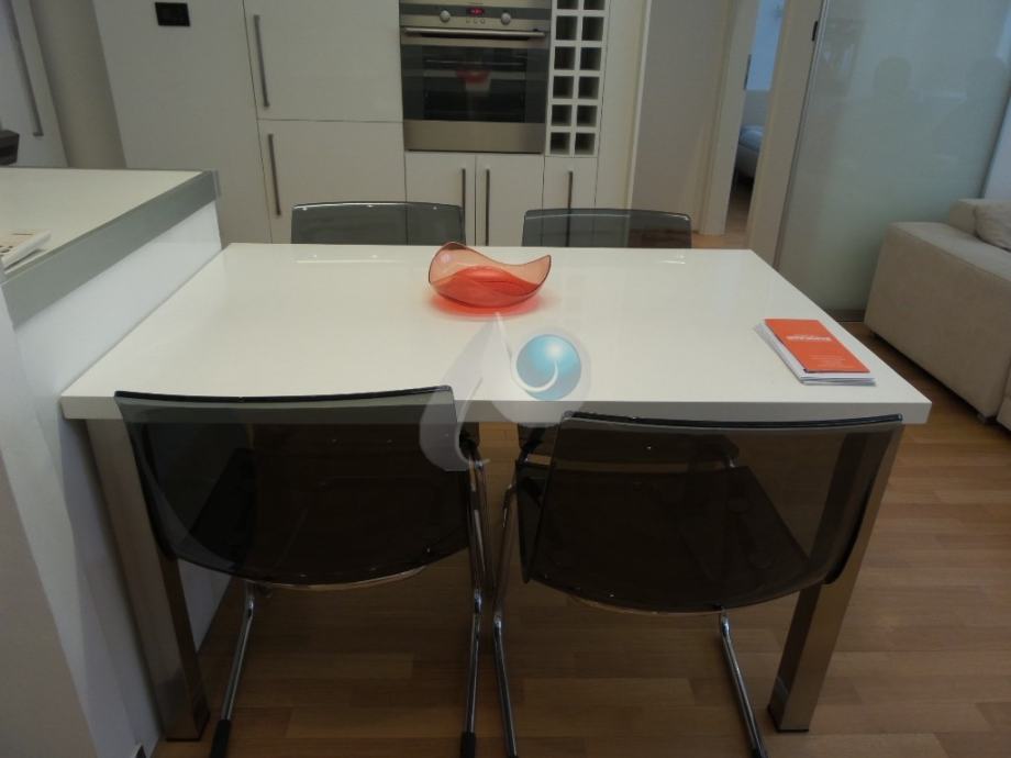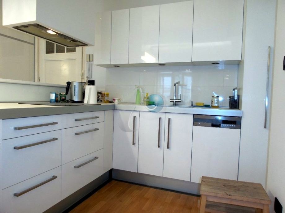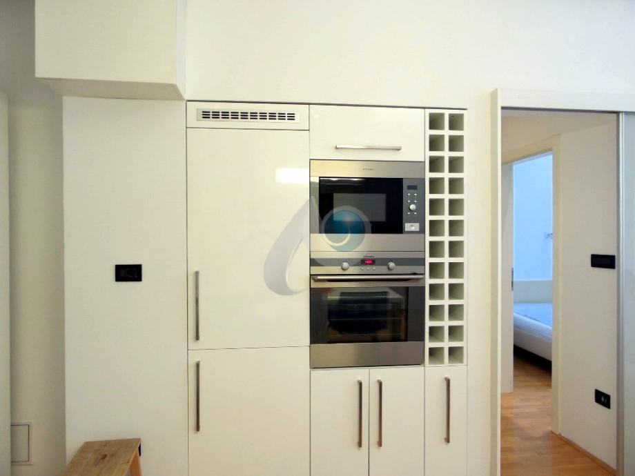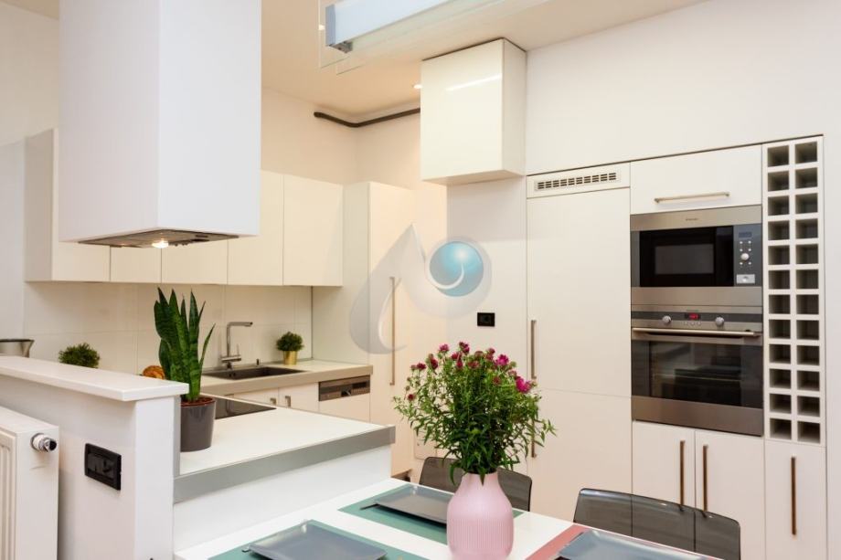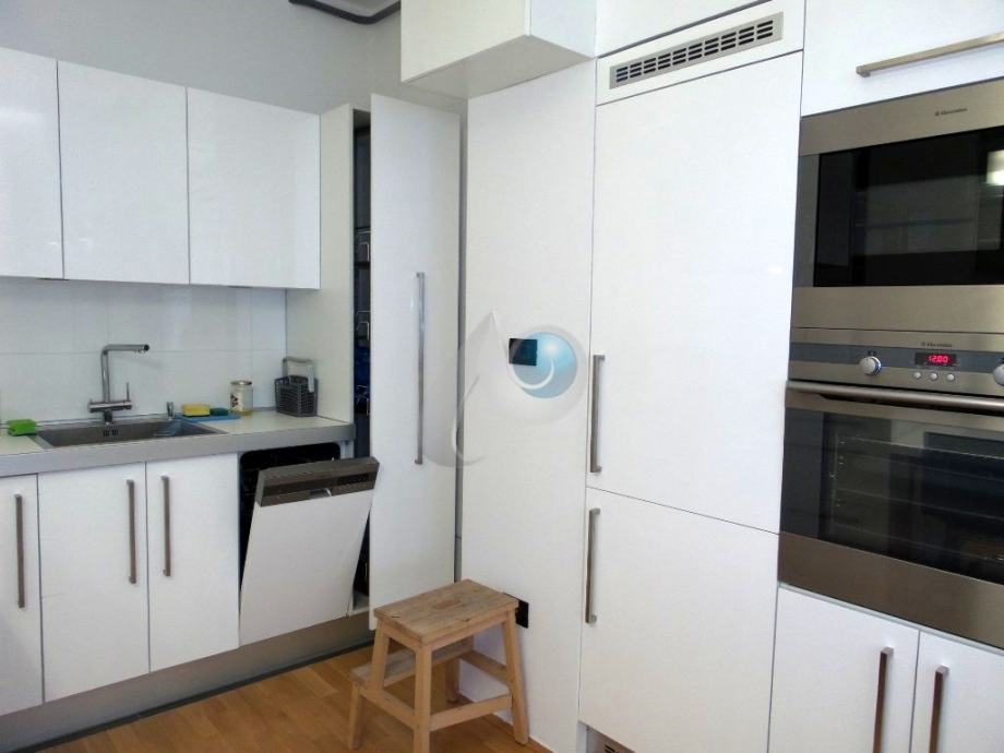 Kuhinja je rađena po mjeri, sa ugradbenim aparatima marke Elektrolux i Faber,