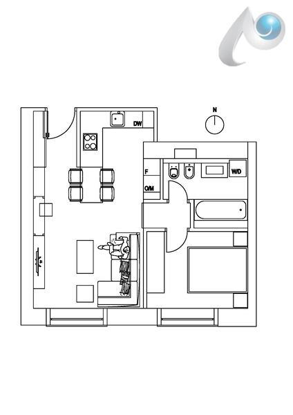 Sastoji se od kuhinje, dnevnog boravka, spavaće sobe, kupaonice.
