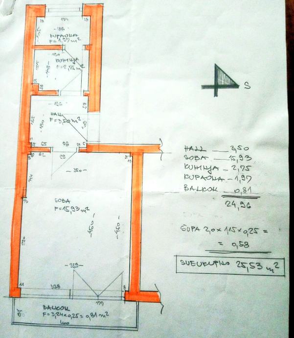 Sastoji se od ulaznog hodnika, jedne sobe s izlazom na balkon, te male kuhinje povezane s kupaonicom.