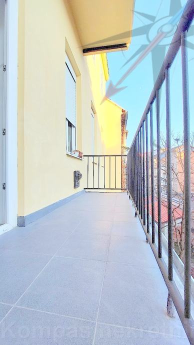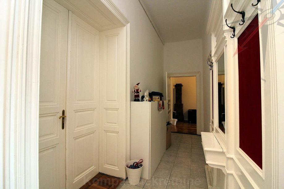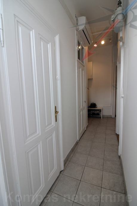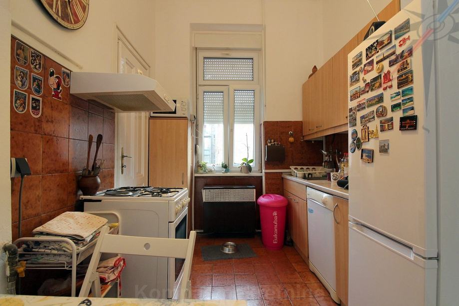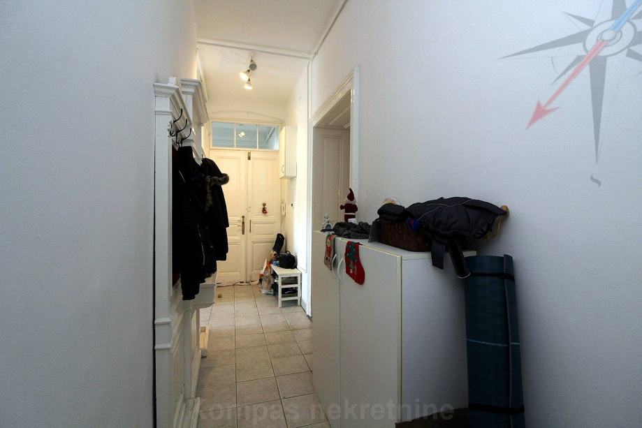 Sastoji se od dva hodnika, tri sobe, kupaonice, toaleta, kuhinje, balkona, dvije ostave. Ima novi klima uređaj od 7 kW, novu vanjsku stolariju na dvorišnoj strani, plinsko grijanje, kaljeve peći, optički internet, originalni parket u sobama, stropove visoke 3,20 m. Pripada mu spremište u podrumu i na tavanu zgrade, uz mogućnost korištenje malog zajedničkog dvorišta. Zgrada ima obnovljenu fasadu. Pričuva za stan je 900 kn.