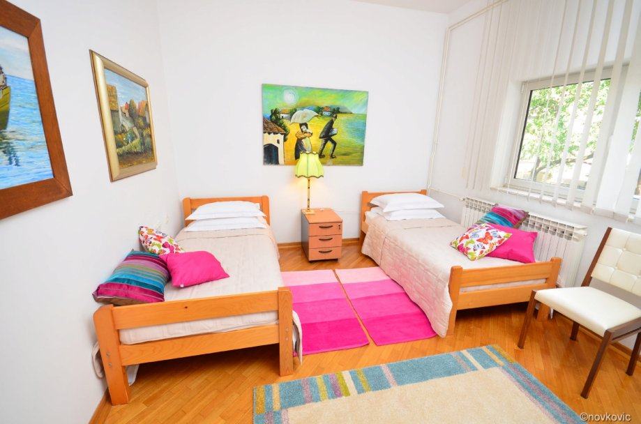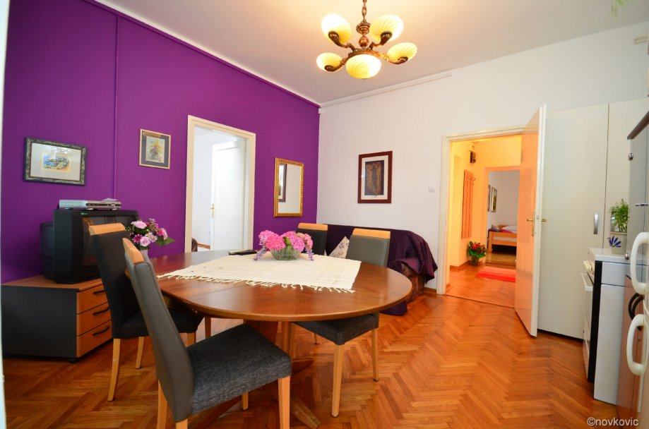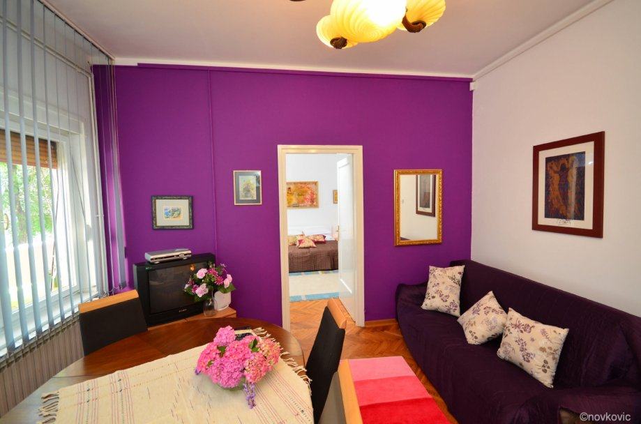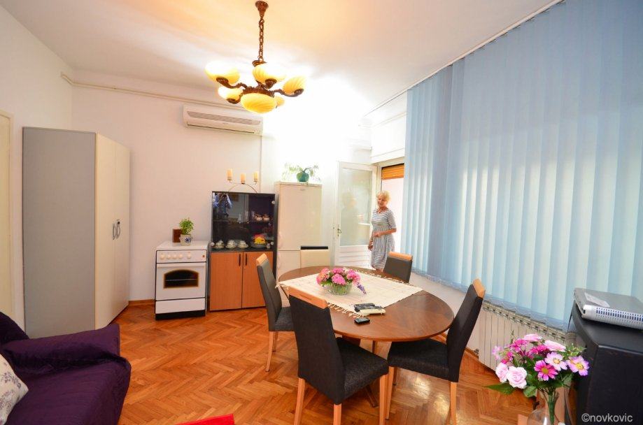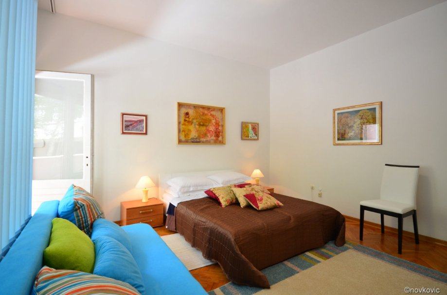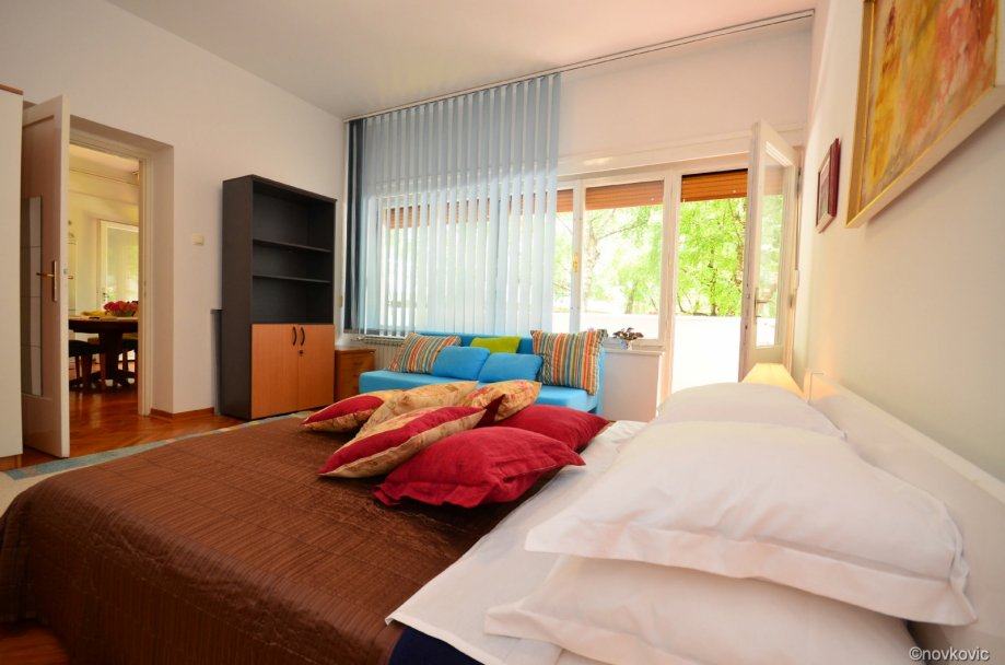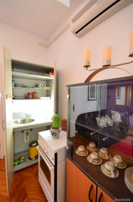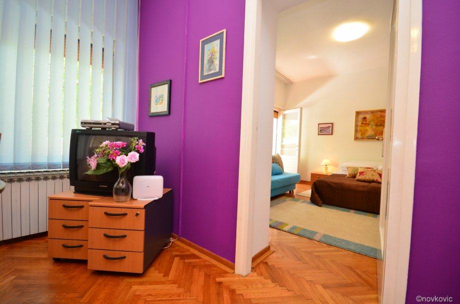 Suđe, posteljina, rućnici, Platma TV, čajna kuhinja u sklopu dnevnog boravka,dnevni boravak i spavaća soba imaju balkone.