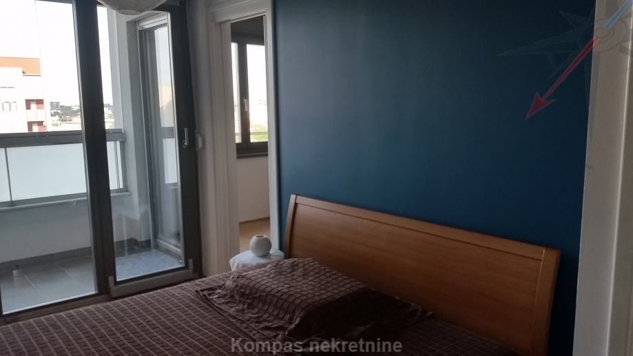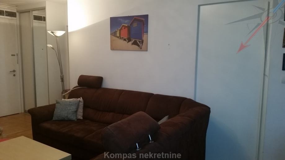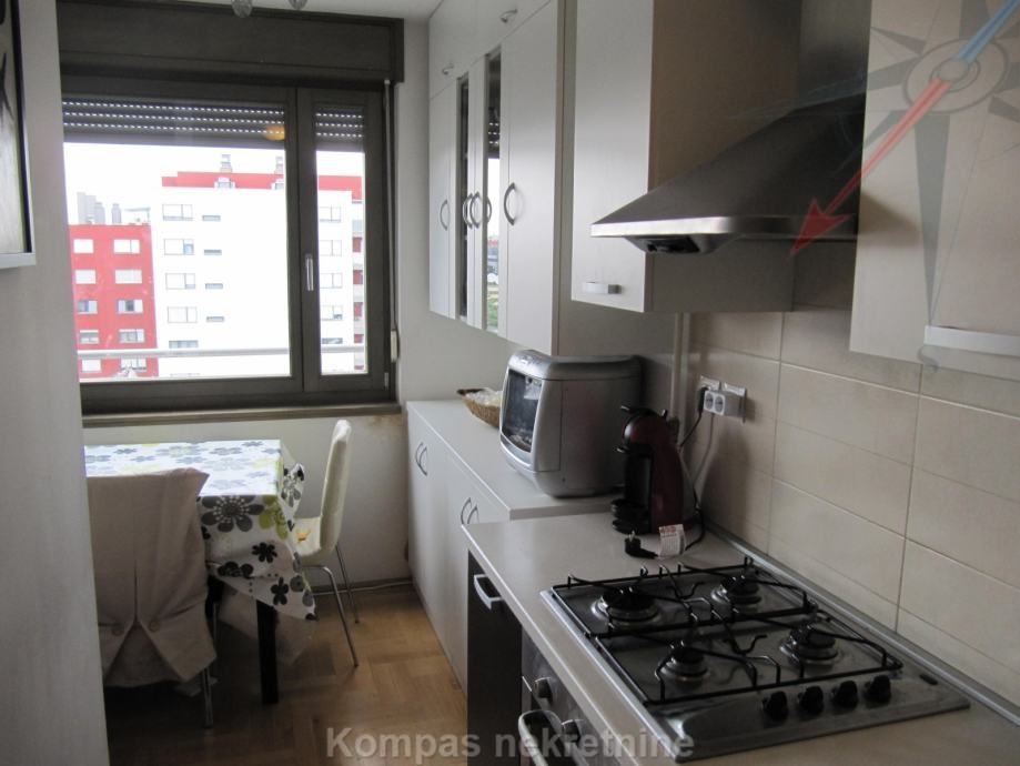 Furnished 2-room apartment (47 m2) on 7th floor of a residential building with an elevator, Crvenog križa Street. The apartment consists of an entrance area with a built-in wardrobe, a living room with an exit to the loggia, a kitchen, a bedroom, a bathroom. Has security door, video intercom, alarm, a possibility of high-speed internet, air conditioning, gas central heating. Pets are not allowed. The building reserve is paid by the owner. The apartment has one parking space in the garage, which is connected to the apartment by an elevator. Parking is also possible in public areas with a privileged parking ticket. The apartment is located near public transport and the market.