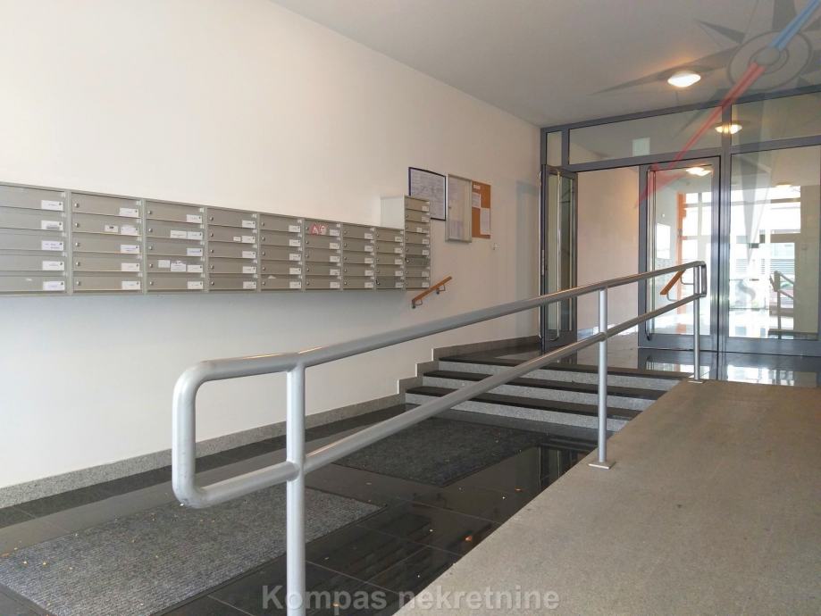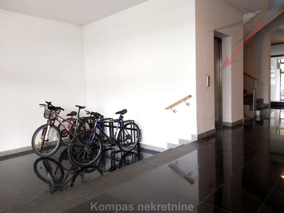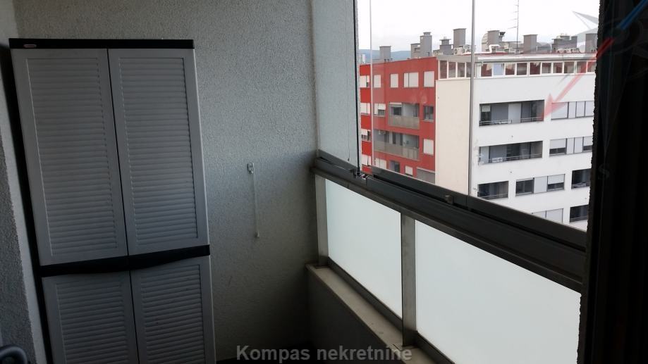 Namješten dvosoban stan ( 47 m2 ) na sedmom katu stambene zgrade s liftom ( zgrada „Tehnika“ ), ulica Crvenog križa. Stan se sastoji od ulaznog prostora s ugradbenim ormarom, dnevne sobe s izlazom na loggiu, kuhinje, spavaće sobe, kupaonice. Ima alarm, protuprovalna vrata, video portafon, mogućnost brzog interneta, klima uređaj, plinsko etažno grijanje. Držanje kućnih ljubimaca nije dozvoljeno. Pričuvu plaća vlasnik. Stanu pripada jedno parkirno mjesto u garaži koja je povezana liftom do stana. Parkiranje je moguće i na javnim površinama uz povlaštenu parkirnu kartu. Stan se nalazi u blizini javnog prijevoza i tržnice.