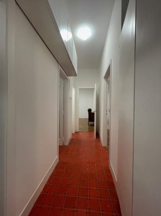 Stan je protočan, sa međusobno povezanim sobama i hodnikom odvojenom kuhinjom i pomoćnim prostorijama. Posebnu mu dimenziju daju visoki stropovi.