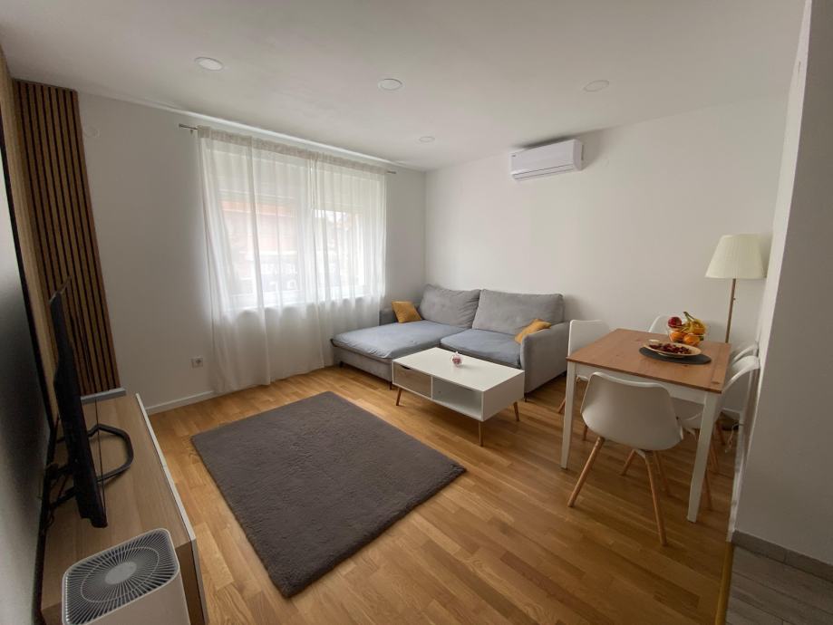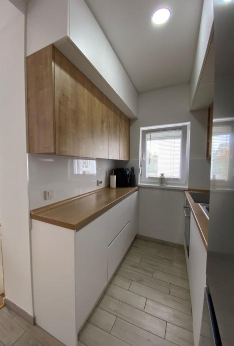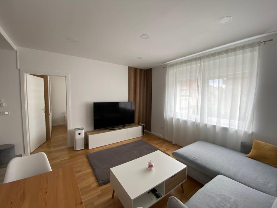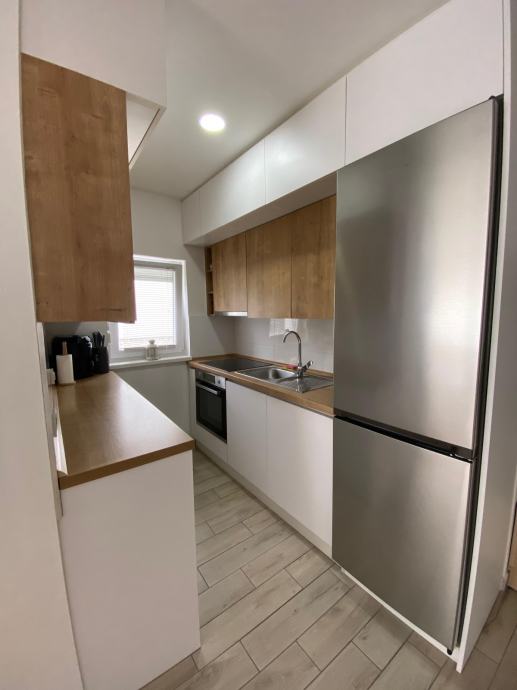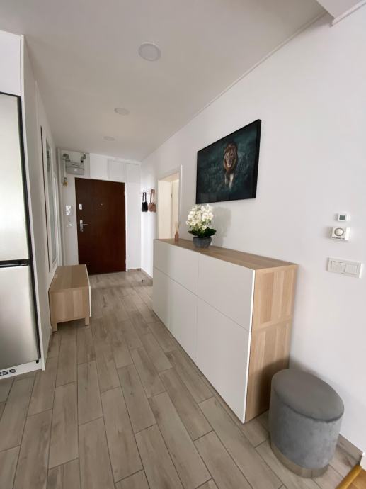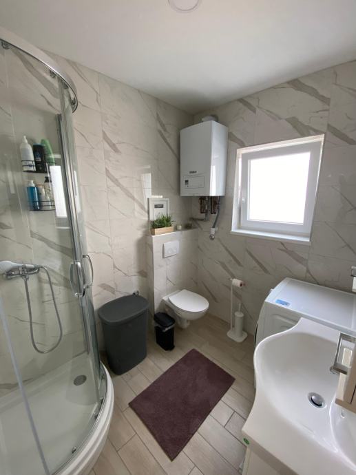 Kvadratura stana je 57m², a sastoji se od kupaone s wc-om, hodnika, dnevnog boravka, kuhinje i dvije prostrane spavaće sobe. Zgrada je građena 2020. godine i posjeduje energetski certifikat B. Grijanje je plinsko centralno kondenzacijskim bojlerom Vaillant s podnim grijanjem, a u dnevnom boravku je ugrađena klima. Svaka soba ima zasebni termostat za prilagođavanje temperature. Spavaće sobe s kuhinjom na prozorima posjeduju rolo komarnike.