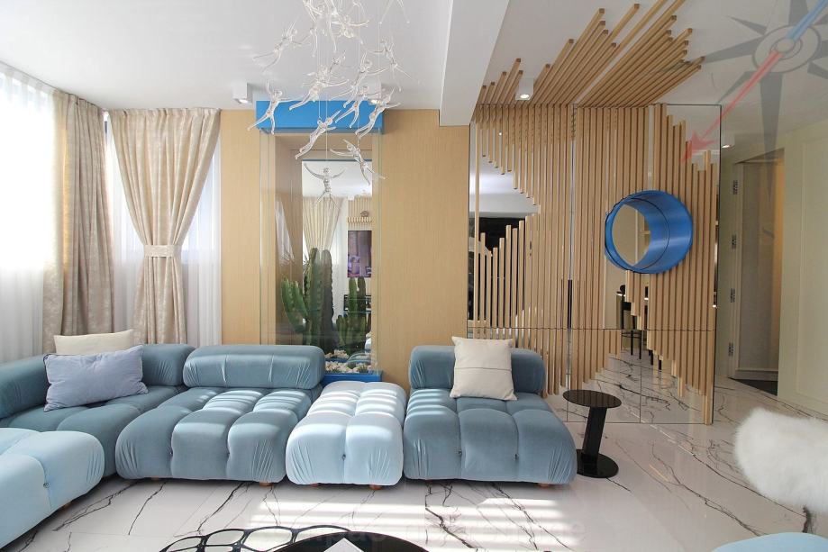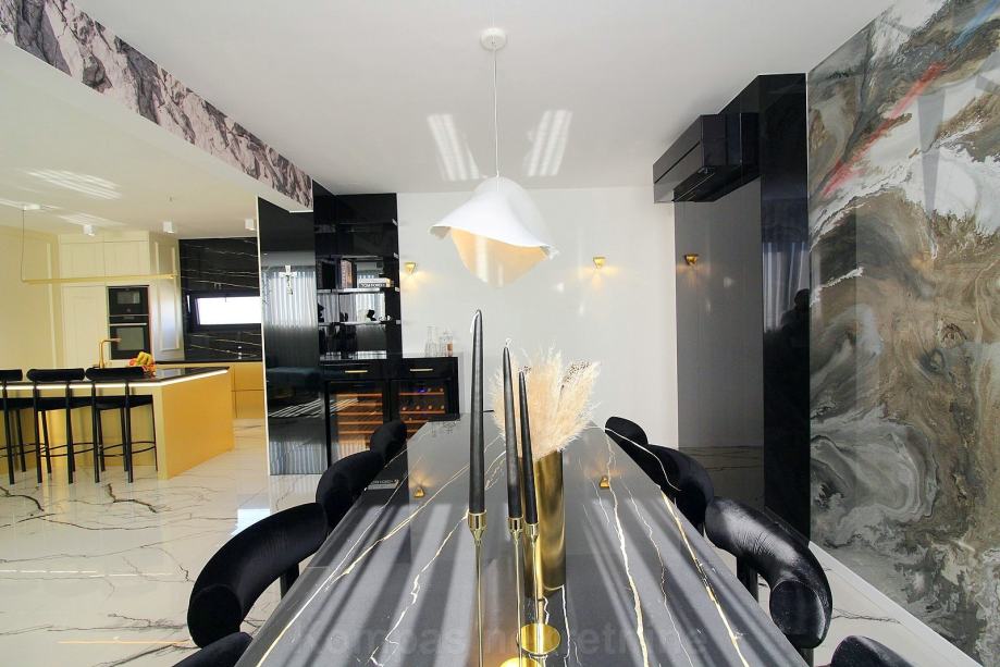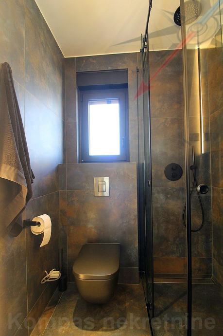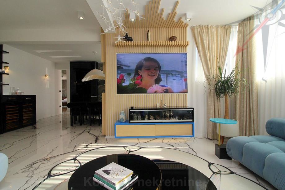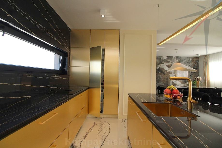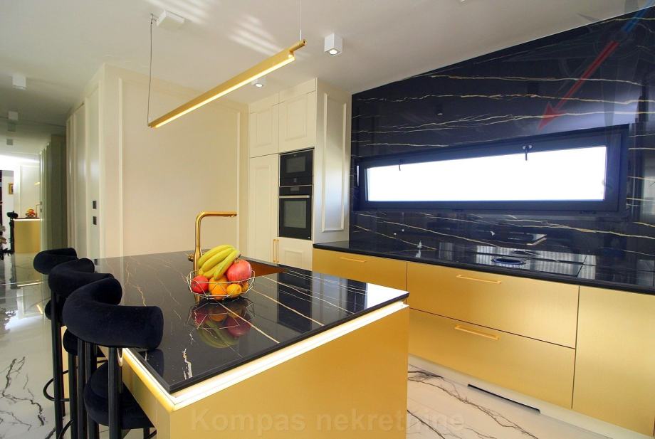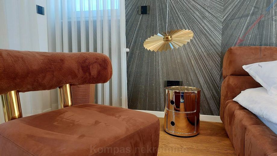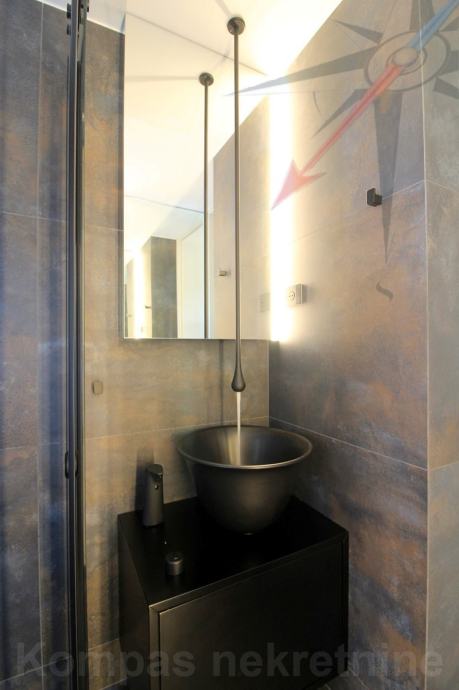 Oprema: video portafon, optički internet, plinsko centralno grijanje, podno plinsko grijanje, klima uređaj, ugradbeni ormari, alarm, klesana mramorna kada, kvalitetan dizajnerski namještaj i oprema ( NEFF, AXOR, MOOOI CARPETS & RUGS ... ).