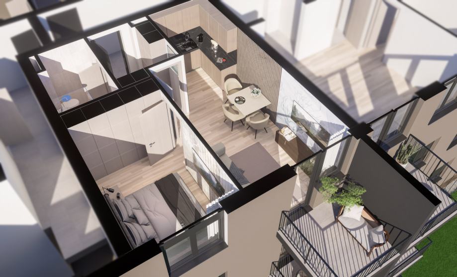 3. TIP: 59 m2 + 8 m2 (naktriveni balkon) - dvije spavaće sobe